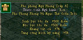 • Phi Phong : 800xu + 50 HCTK + 50 mảnh phi phong + 30 Thủy Tinh + 30 THBT