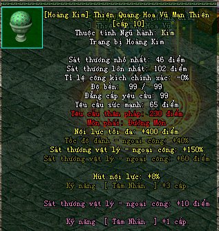 • Ngũ Hành Ấn : 500xu + 50 HCTK + 50 mảnh ấn + 30 Thủy tinh + 30 THBT